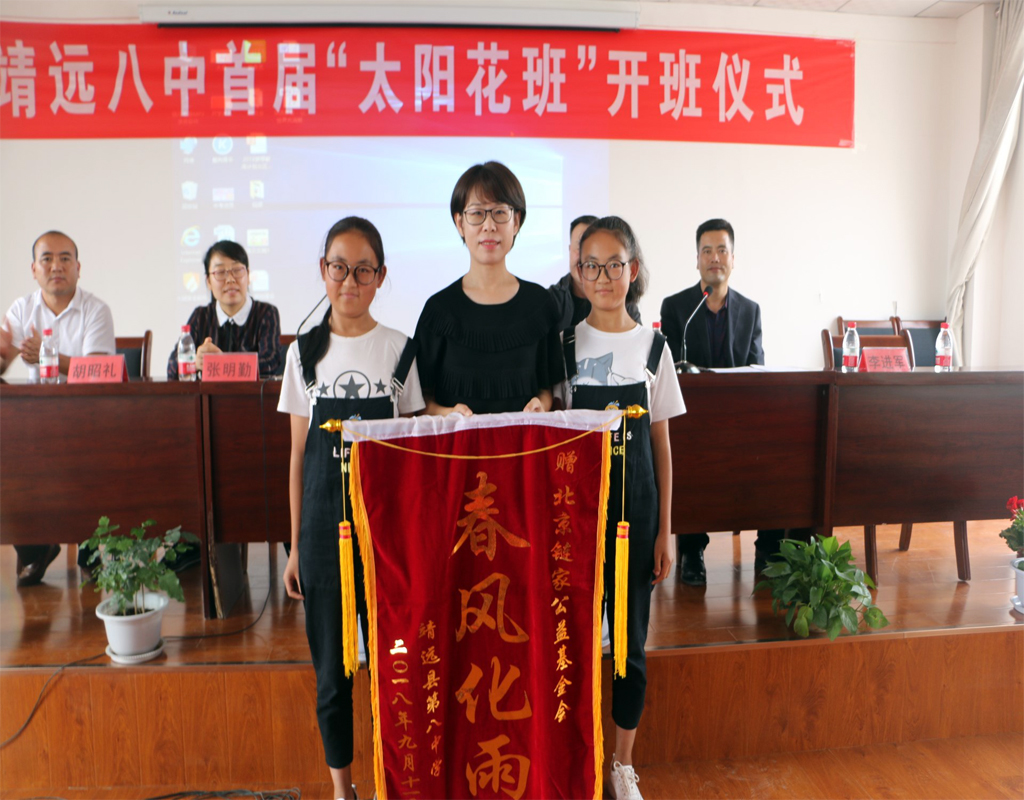 为更好地助力我市教育事业发展,白银市侨联联合链家集团、北京链家公益基金会今年在靖远七中、靖远八中各开设一个太阳花初中班。9月11日下午,靖远八中首届“太阳花初中班”开班,链家集团副总裁、北京链家公益基金会执行理事长贾生平女士,市侨联副调研员张明琴、靖远县教育局局长韩亮、副局长李进军一同出席了开班仪式并为学生送去新学期的祝福和寄语。