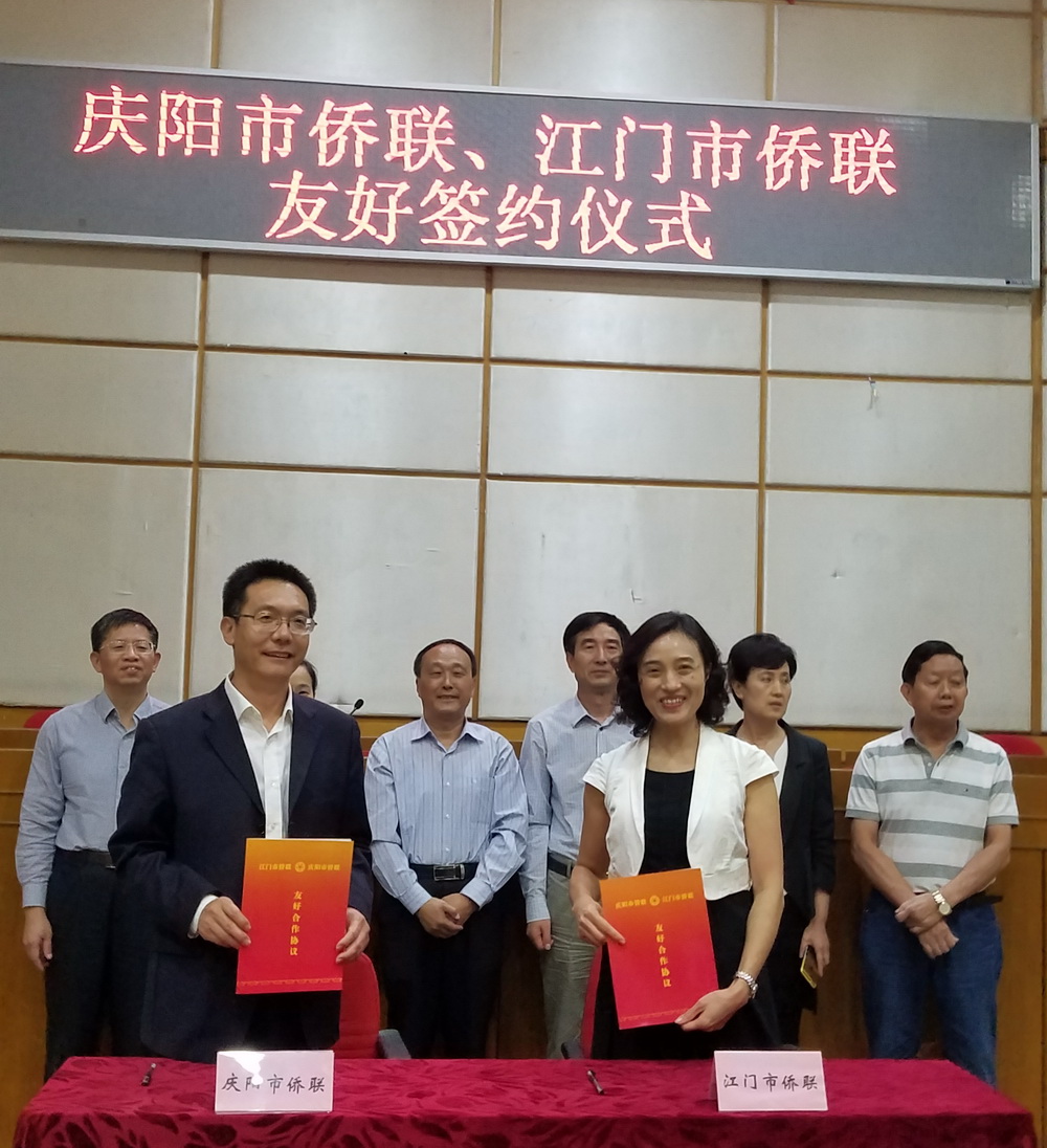 广东省江门市是全国重点侨乡之一,侨务资源丰富,现有江门籍华侨华人340万人,侨资企业7000多家。近年来,江门市侨联工作成效显著,是全国侨联系统先进典型。此次友好侨联协议的签订,对密切江门和庆阳两地侨联的友好往来,寻求双方在经贸、科技、人文等领域的交流合作,共同推动两地侨联事业发展、促进两地经济繁荣和社会进步具有十分重要的意义。