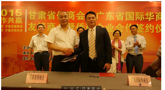 会上,两家侨资企业兰州捷信投资担保有限公司与广州市俊嘉葳生物科技有限公司负责人也签署了合作协议,首期将合作投资五千万元,开发甘南地区的八万亩原生态沙棘基地。