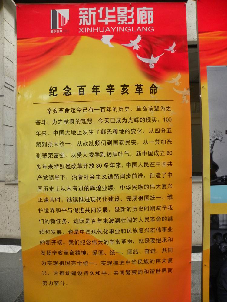 辛亥革命100周年图片展以“新华影廊”为展览平台,分“伟大的中国民主革命先行者孙中山”、“武昌起义揭开辛亥革命序幕”、“辛亥革命先驱和爱国华侨”、“纪念百年辛亥革命”四个主题,以200余幅老照片生动再现辛亥革命的重要历史场景,系统地呈现了辛亥革命波澜壮阔的历史进程。