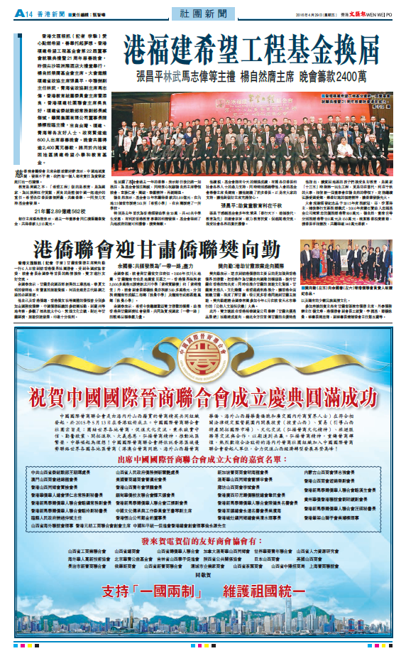 香港文汇报对甘肃侨联代表团访问进行了报道