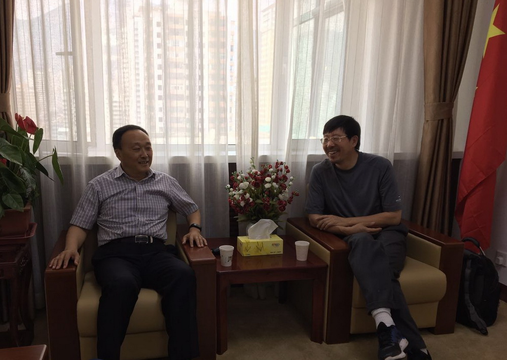 樊向勤主席对宋国兴先生的来访表示欢迎,双方进行了亲切友好交谈。宋国兴先生在介绍了全美甘肃联谊会的发展现状和今后工作后,樊主席表示,希望全美甘肃联谊会不断成长壮大,使甘肃人在美国的协会力量不断发展,同时,要加深与甘肃老家的联系沟通,尽力为家乡多做贡献。
