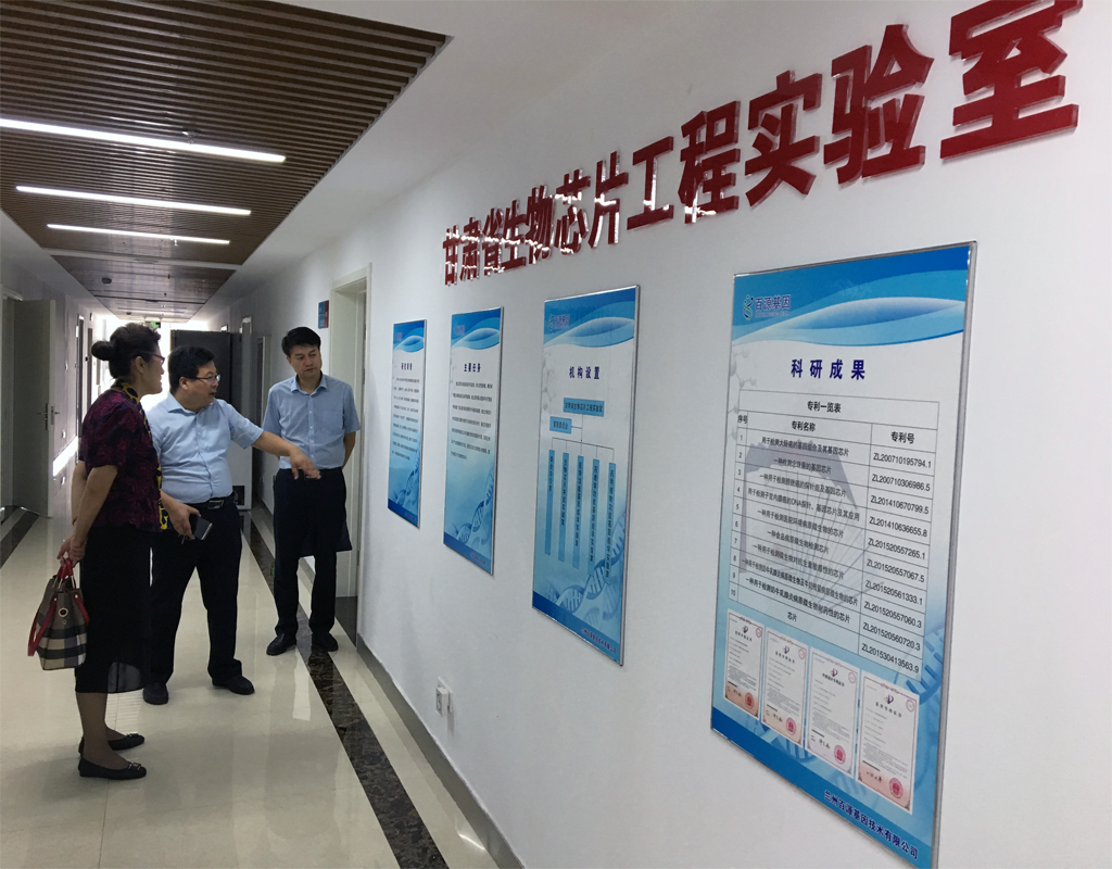 在雁滩兰州留学人员创业园,调研组参观了兰州百源基因技术有限公司。百源基因技术有限公司成立于2004年12月,是一家由留学归国人员、生物医药行业专家联合创办的高新技术企业。经过10年的发展,已发展成为甘肃省生物芯片与分子诊断领域的领军企业。
